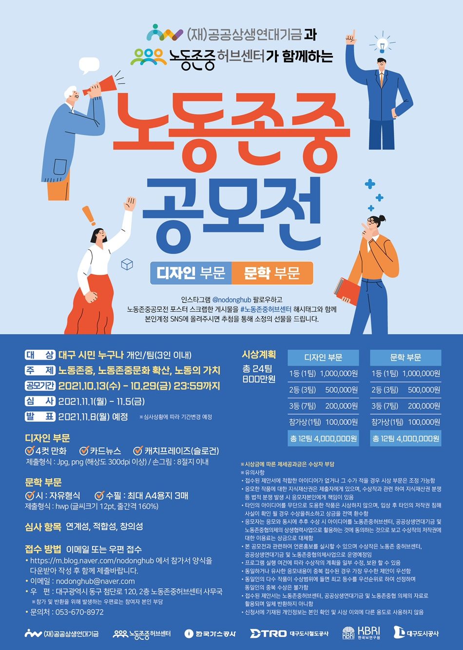 - 우편접수: 우)41062 대구광역시 동구 첨단로 120, 2층 노동존중허브센터사무국