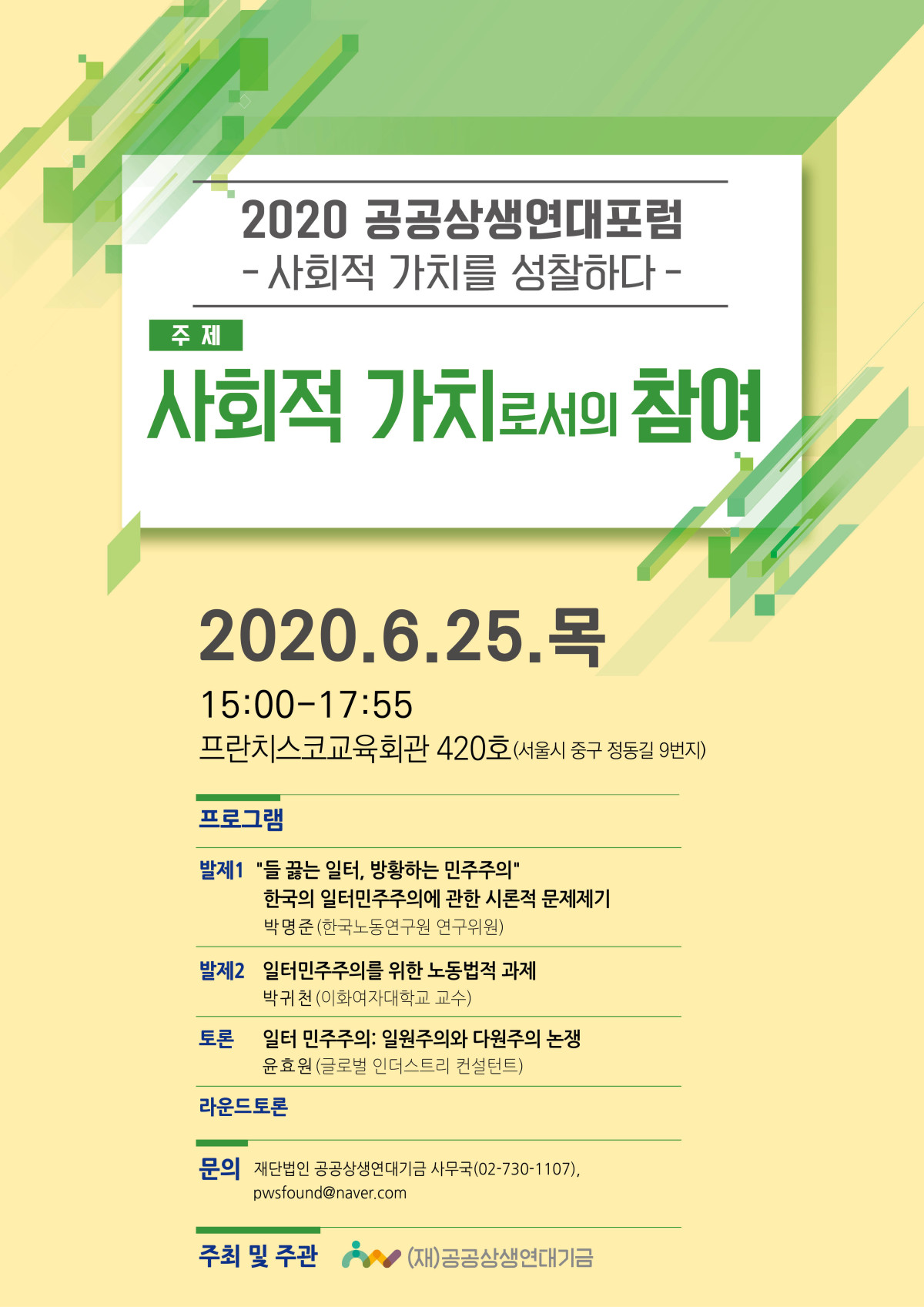 □ 문의 : 재단법인 공공상생연대기금 사무국(02-730-1107, pwsfound@naver.com)