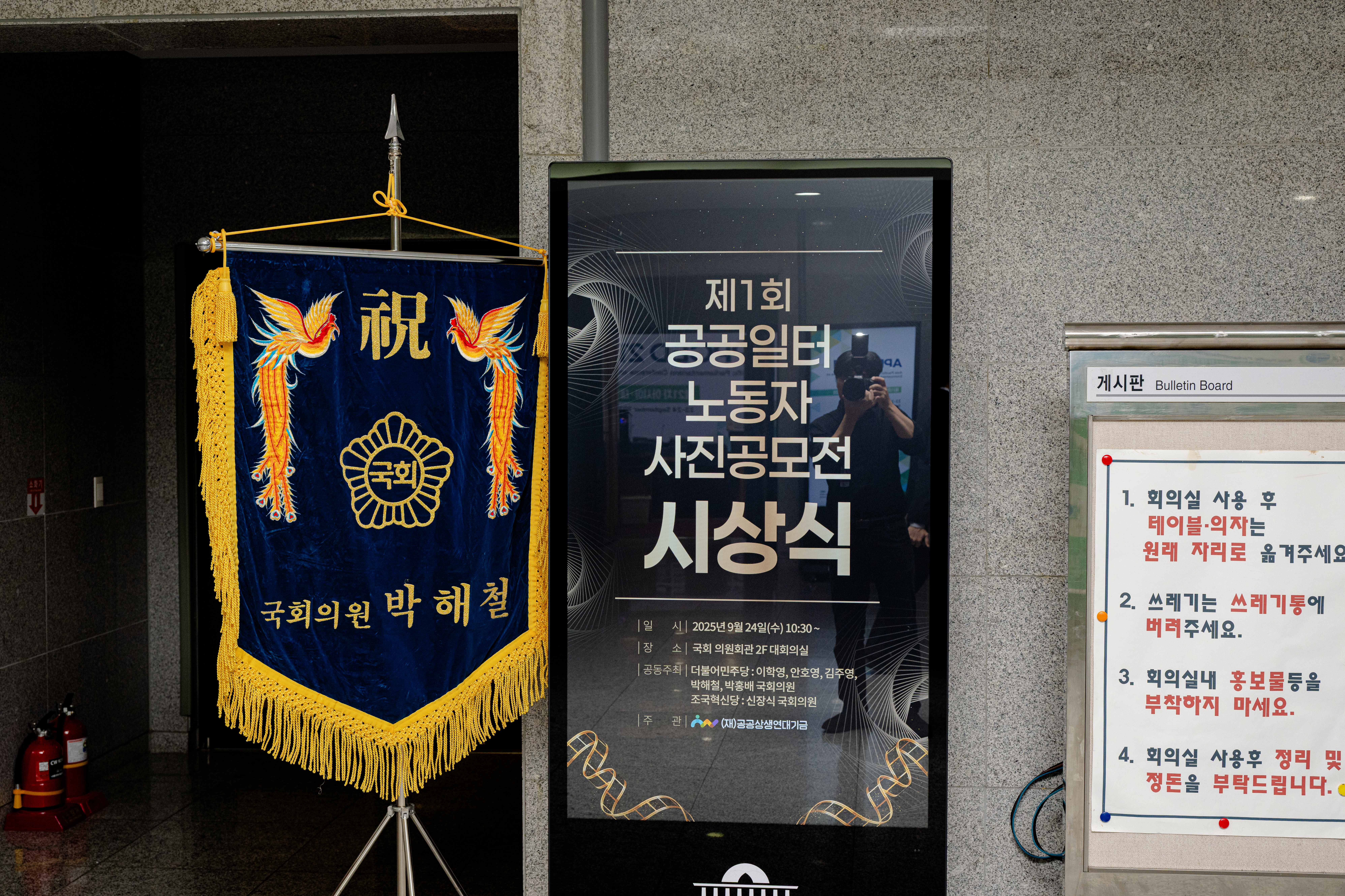 (재)공공상생연대기금은 9월 24일 국회 의원회관 대회의실에서 제1회 공공일터·노동자 사진공모전 시상식을 성황리에 개최했습니다.