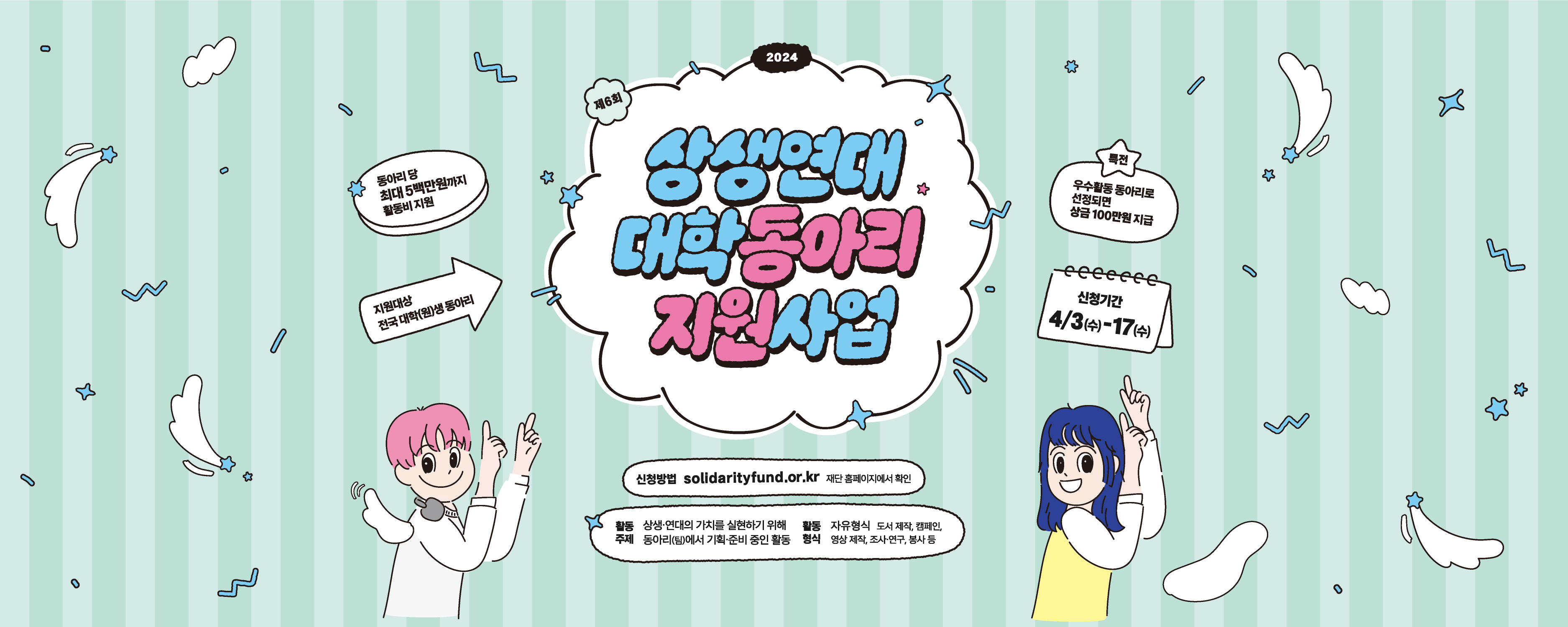 대학 동아리들을 지원하고자 우리 재단은 "상생연대 대학 동아리 지원사업"을 진행합니다.