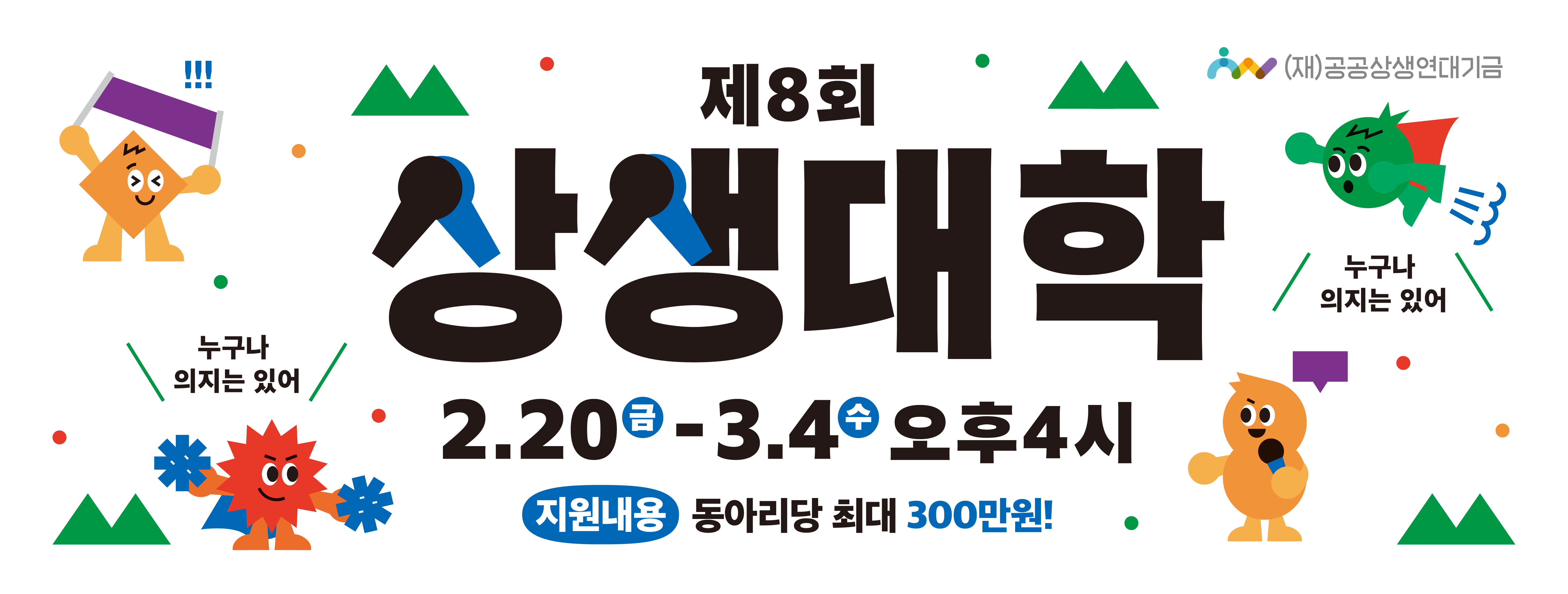 (재) 공공상생연대기금은 ‘제8회 상생연대 대학동아리 지원사업’을 개최합니다.