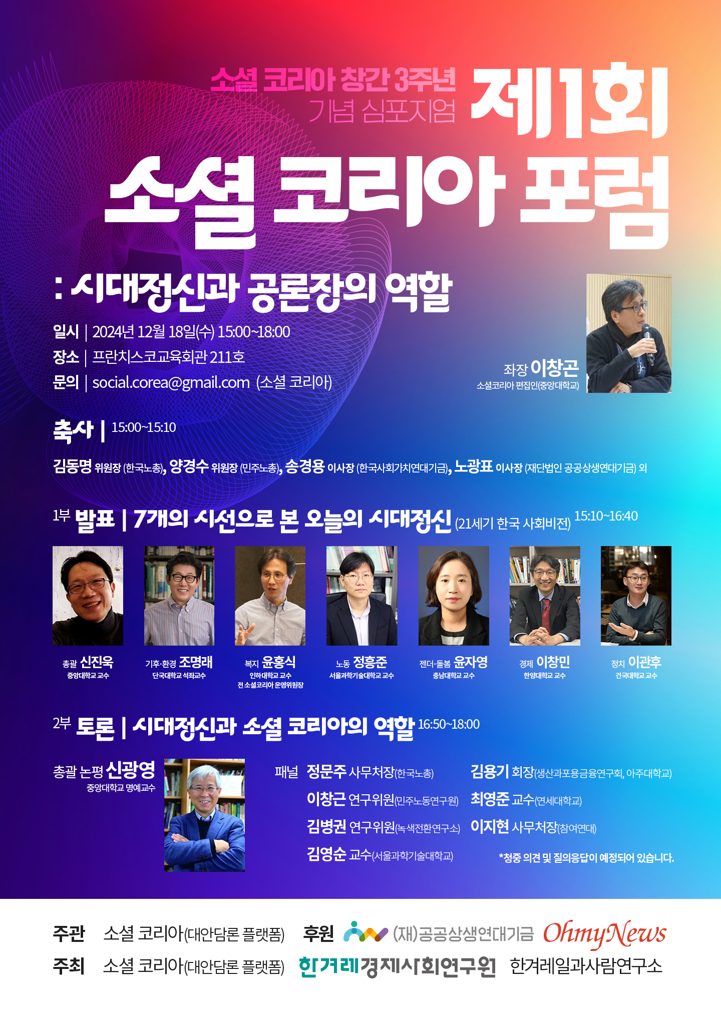"시대정신과 공론장의 역할"을 주제로 "제1회 소셜 코리아 포럼"을 개최합니다.