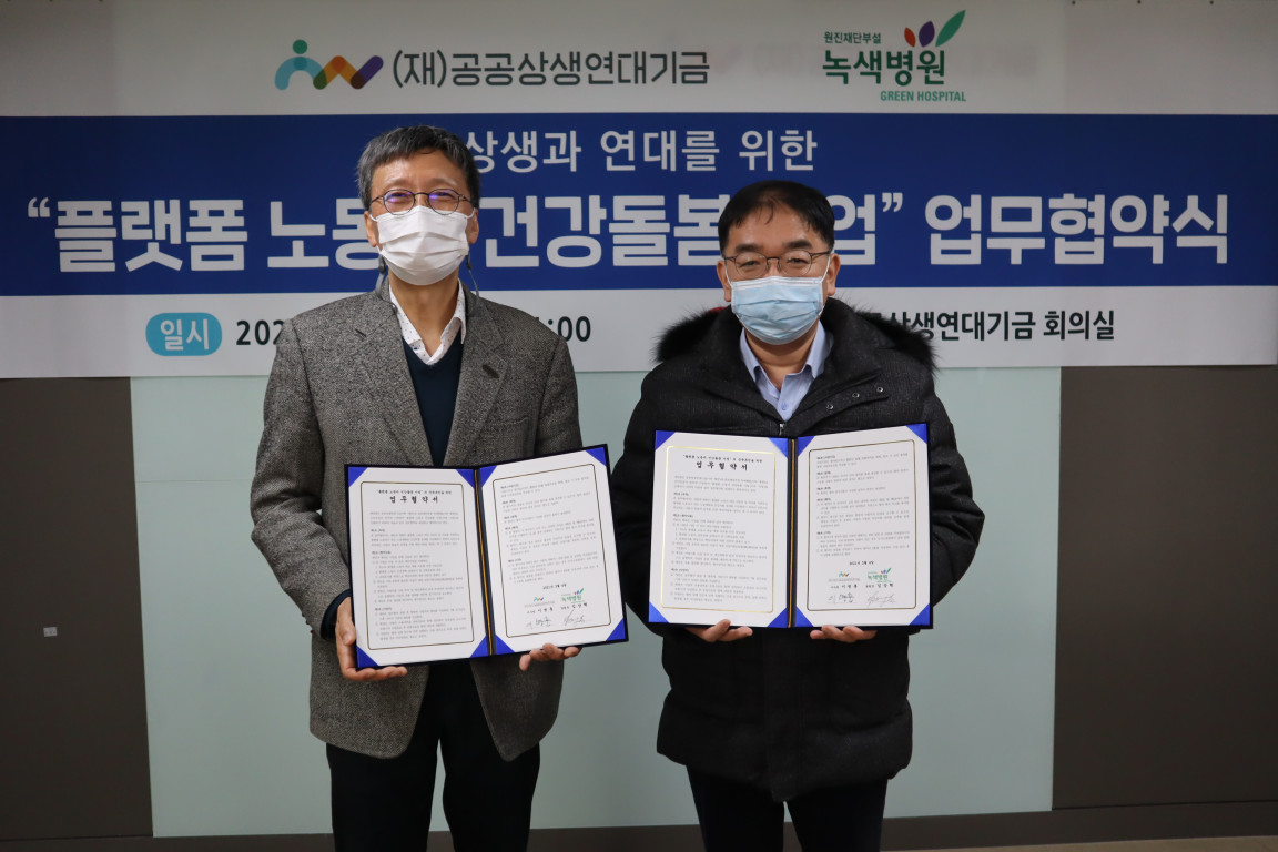 ■ 재단은 4일 서울 종로구 재단 회의실에서 업무협약식을 개최하고, 녹색병원과 ‘플랫폼 노동자 건강돌봄 사업’을 추진한다고 밝혔다.