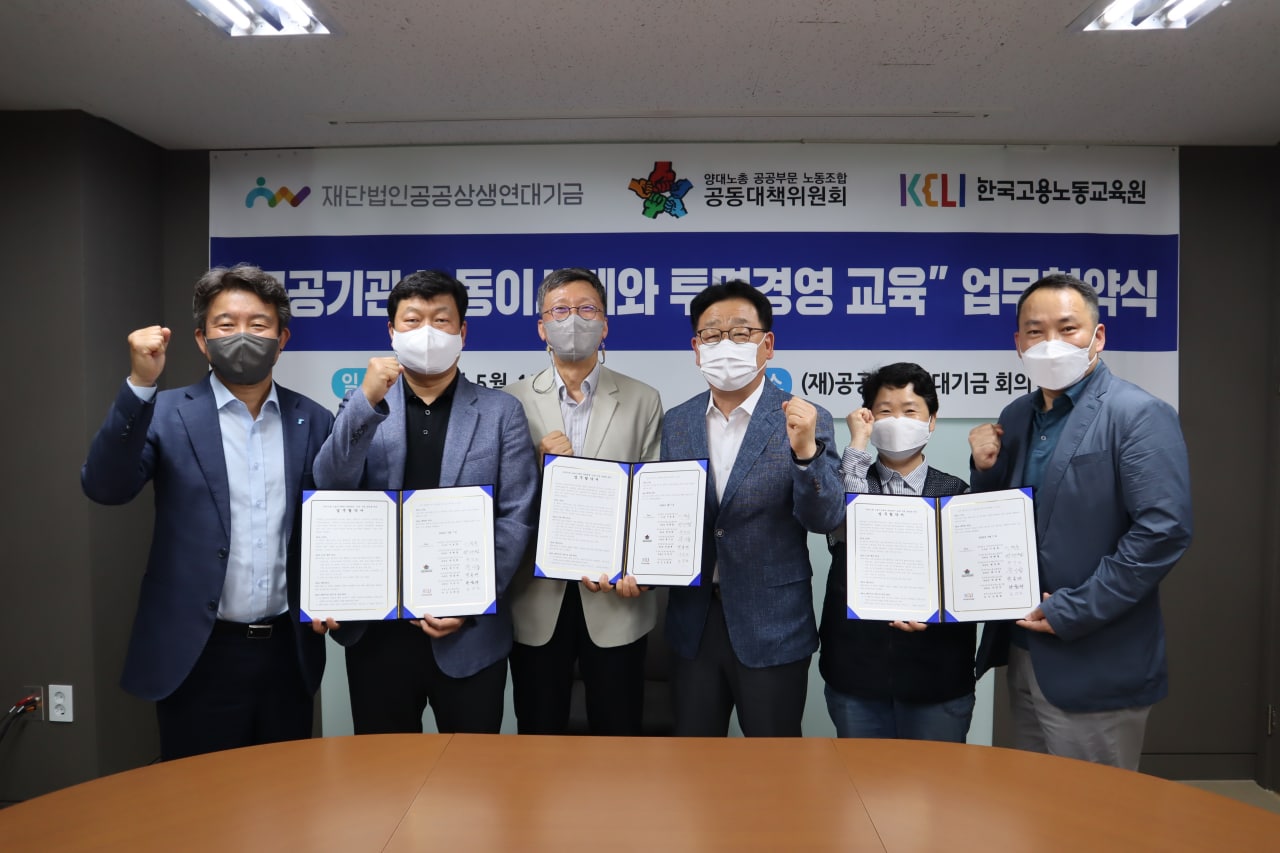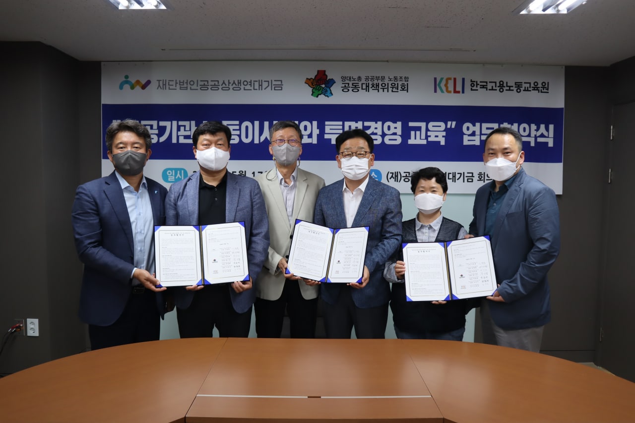 ■ 재단법인 공공상생연대기금(이사장 이병훈)은 17일 청운동 회의실에서 업무협약식을 열고 양대노총 공공부문 노동조합 공동대책위원회, 한국고용노동교육원과 함께 협력하여