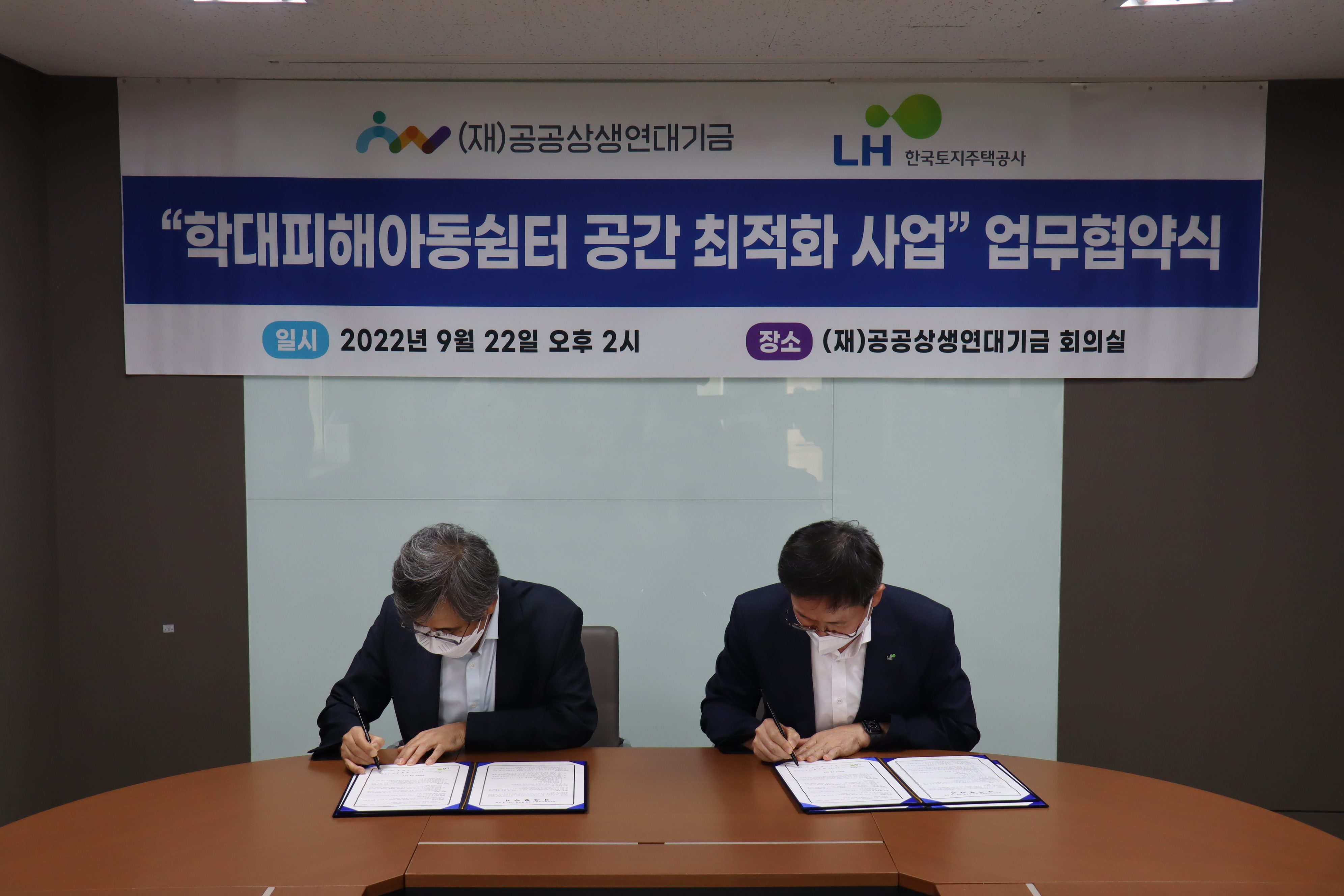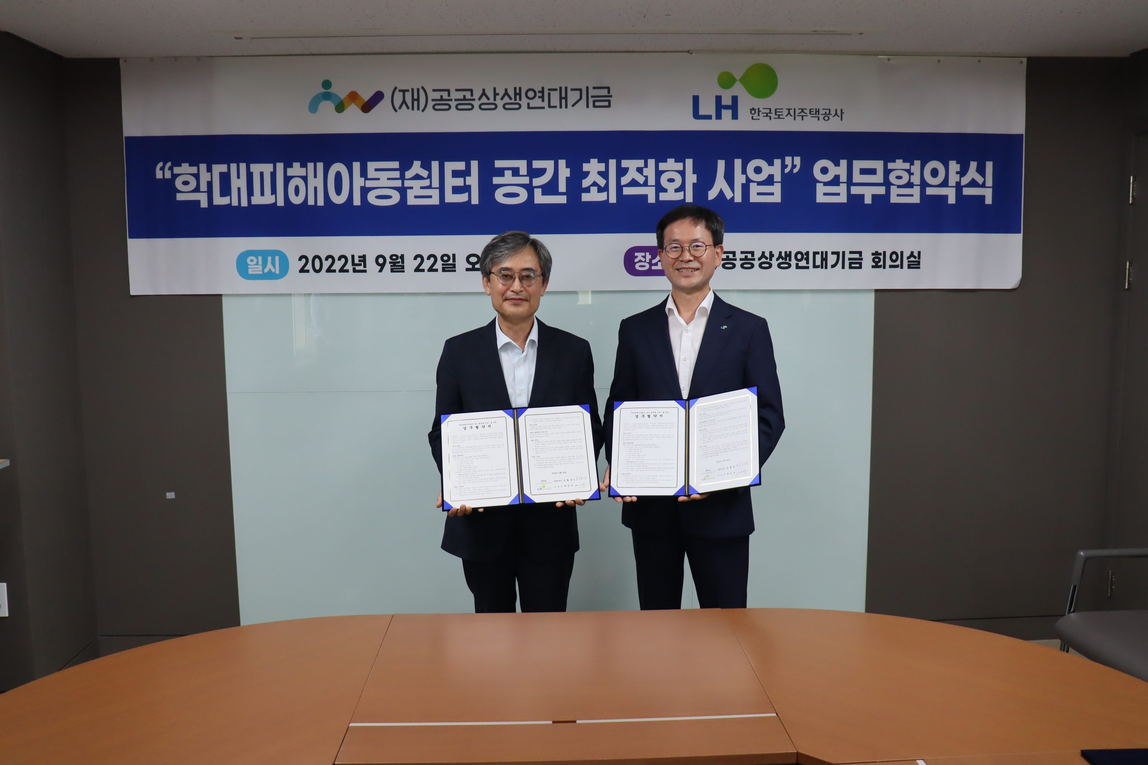 ■ 재단법인 공공상생연대기금(집행위원장 김철운)은 22일 재단 회의실에서 한국토지주택공사 서울지역본부(본부장 조인수)와 학대피해아동쉼터 공간 최적화 사업 업무협약식을 진행했다고 밝혔다.
