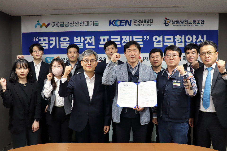 이날 협약식에는 공공상생연대기금 김철운 집행위원장, 한국남동발전 박진우 관리처장, 한국남동발전노동조합 김재민 위원장을 비롯해 관계자 20여 명이 참석했다.