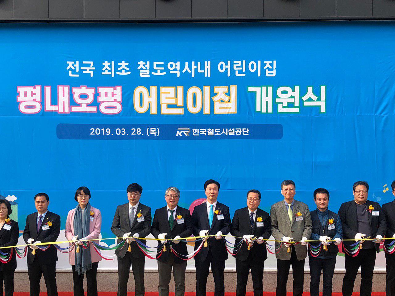 ■ 재단법인 공공상생연대기금(이사장 이병훈)이 제1호 공공기관 협력사업으로 한국철도시설공단과 공동조성한 국내 첫 철도역사 어린이집인 ‘평내호평 어린이집’이 28일(목) 정식 개원했다.